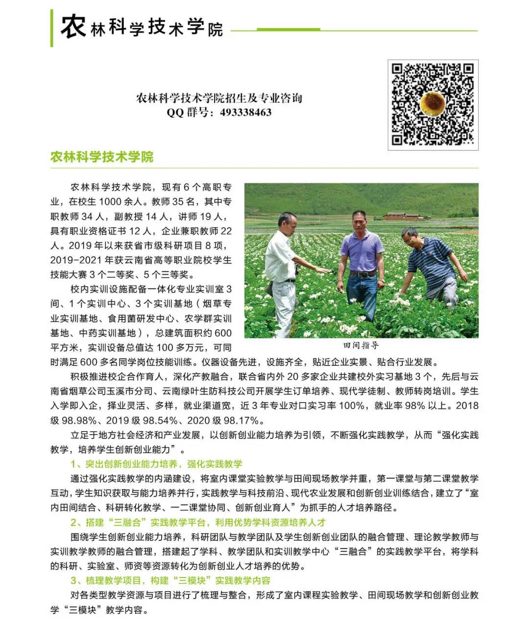 玉溪農(nóng)業(yè)職業(yè)技術(shù)學(xué)院2021年招生簡章
