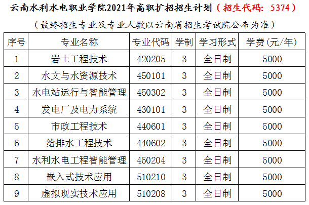 云南水利水電職業(yè)學(xué)院2021年高職擴招招生簡章