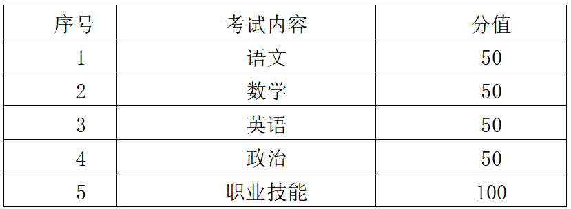 文化素質(zhì)測試為合格性測試,滿分200分,主要考查考生是否具備高中階段同等學(xué)習(xí)能力,考試科目為語文、數(shù)學(xué)、英語、政治;職業(yè)適應(yīng)性測試,滿分100分。主要考查考生從事生產(chǎn)、建設(shè)、服務(wù)、管理等一線工作所必備的基本職業(yè)素質(zhì)或技能。