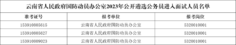 附件:云南省人民政府國防動(dòng)員辦公室2023年公開遴選公務(wù)員進(jìn)入面試人員名單.xls