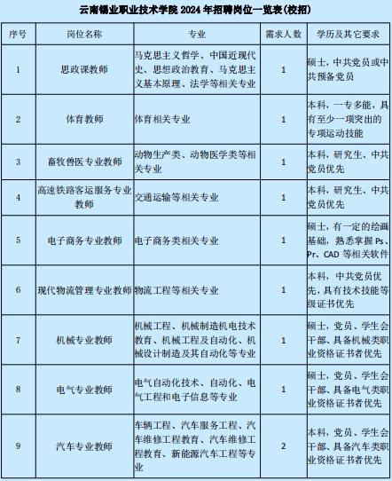 云南錫業(yè)職業(yè)技術(shù)學(xué)院招聘簡(jiǎn)章