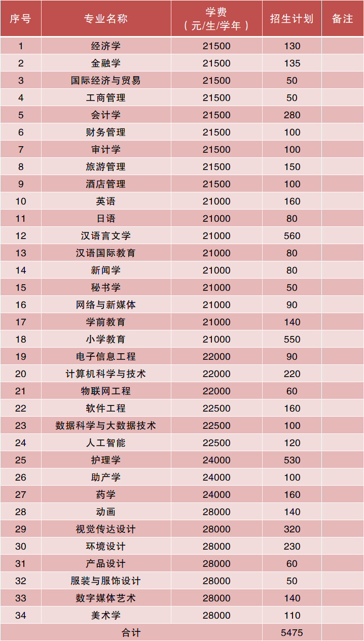 二、2024年本科各專業(yè)計劃及學(xué)費(fèi)