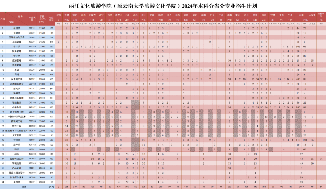 麗江文化旅游學(xué)院2024年招生計劃公布