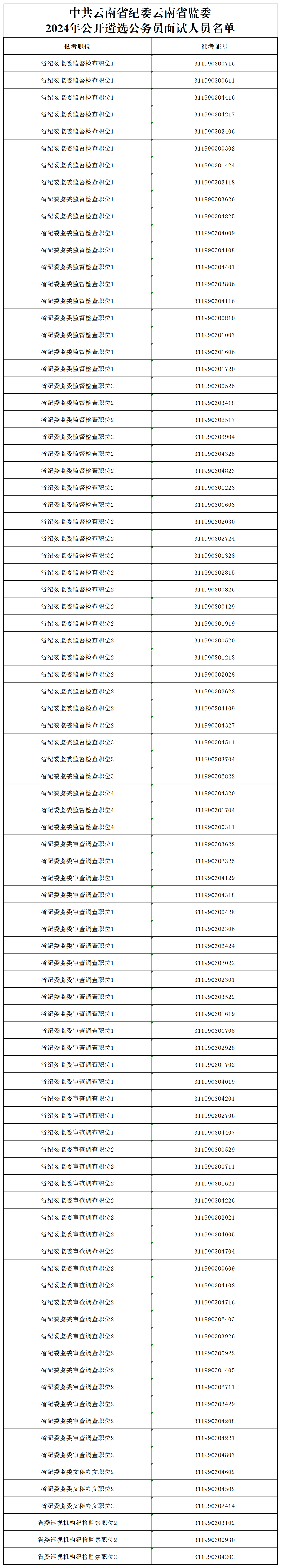 附件:中共云南省紀(jì)委云南省監(jiān)委2024年公開遴選公務(wù)員面試人員名單.xlsx