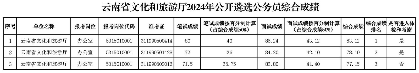 附件:云南省文化和旅游廳2024年公開(kāi)遴選公務(wù)員綜合成績(jī)