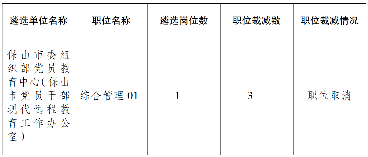 關(guān)于保山市2024年市級(jí)機(jī)關(guān)統(tǒng)一公開(kāi)遴選公務(wù)員考試報(bào)名階段取消部分職位的通告