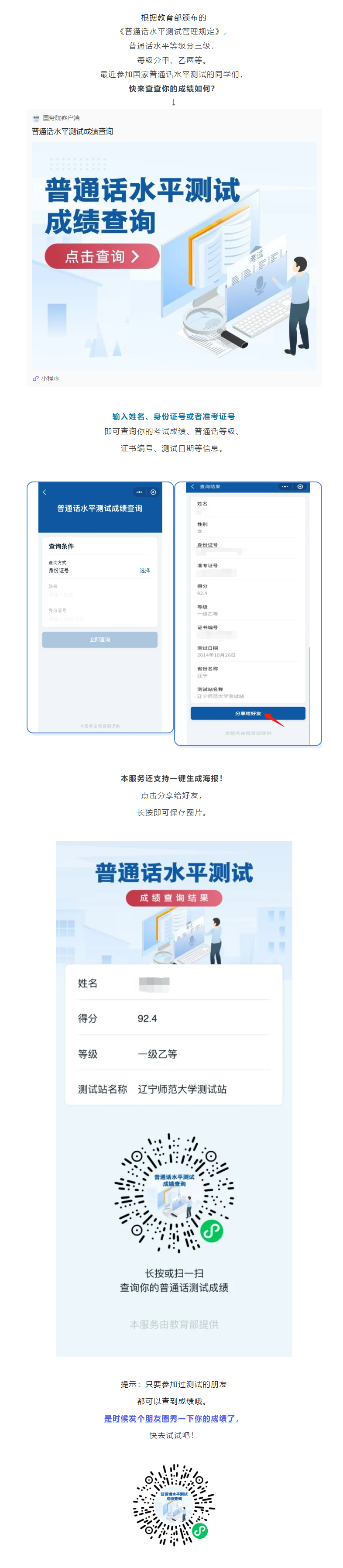 普通話成績查詢?nèi)肟凇▍⒓舆^測(cè)試的都能查)