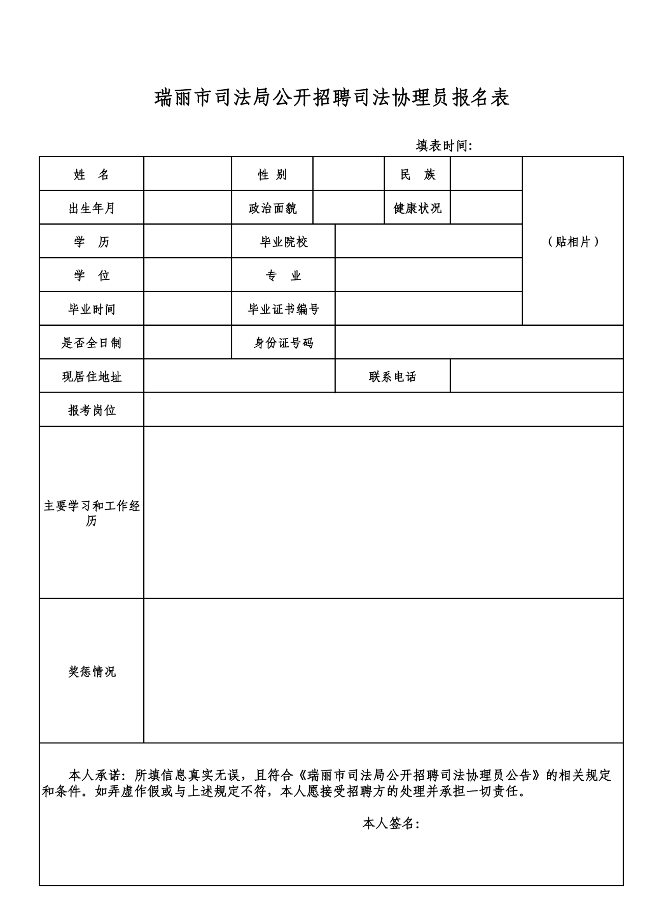 附件:瑞麗市司法局公開招聘司法協(xié)理員報(bào)名表