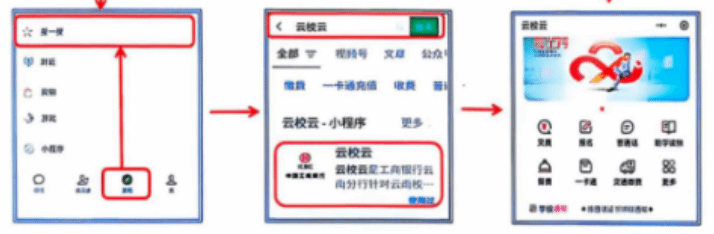 方式二:手機(jī)微信“發(fā)現(xiàn)”→“搜一搜”進(jìn)入“云校云”小程序