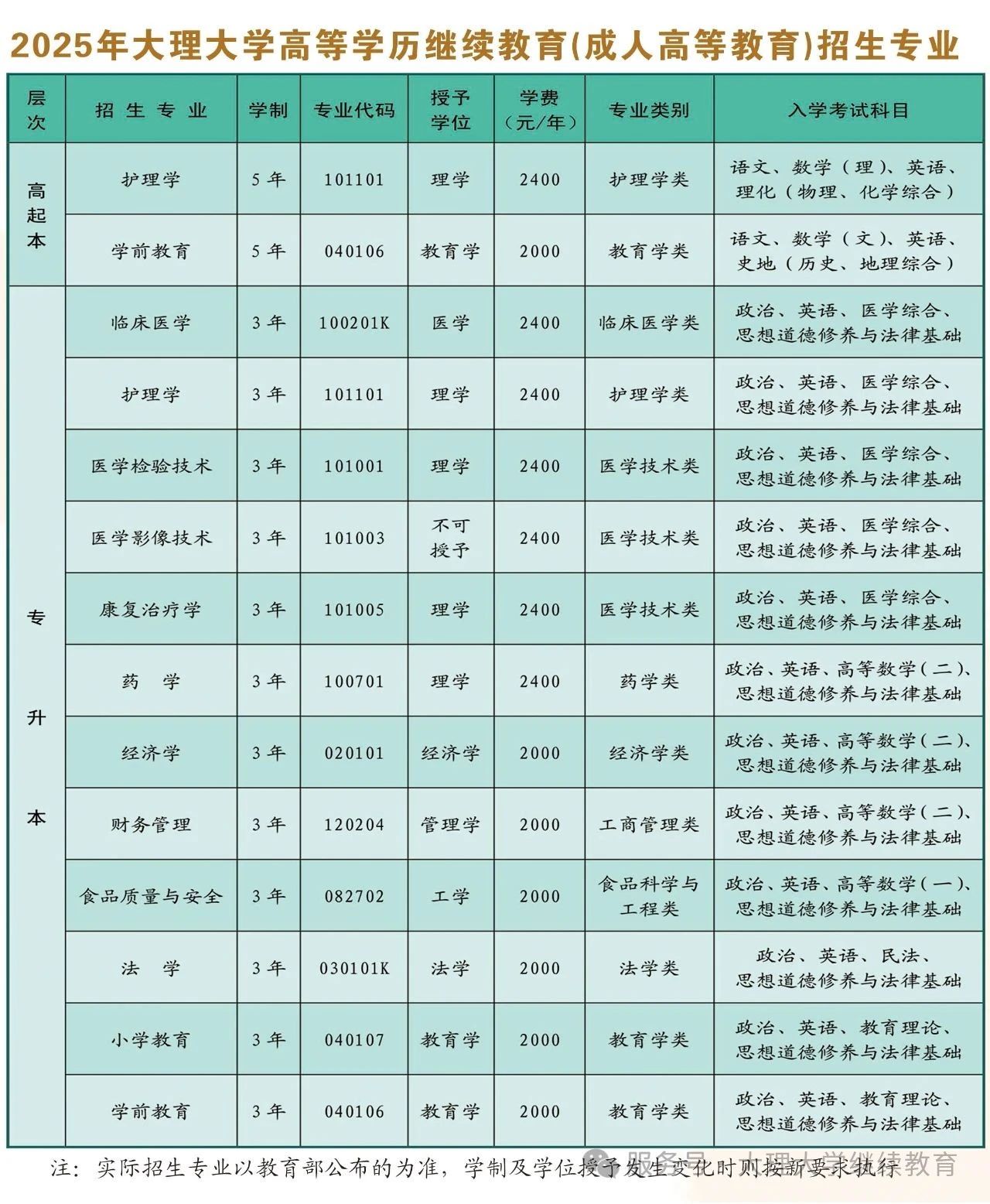 大理大學(xué)2025年高等學(xué)歷繼續(xù)教育(成人高等教育)招生簡(jiǎn)章