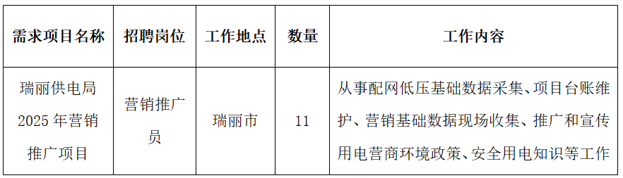 南方電網(wǎng)云南瑞麗供電局2025年項目制用工招聘公告