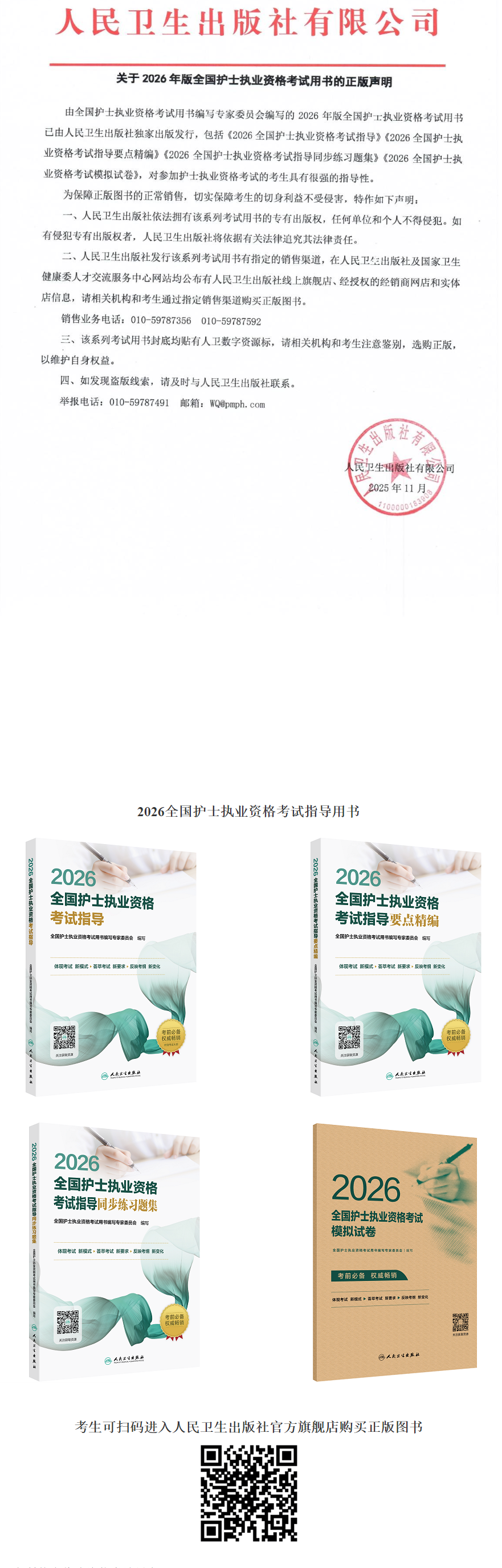 關(guān)于2026年版全國(guó)護(hù)士執(zhí)業(yè)資格考試用書(shū)的正版聲明