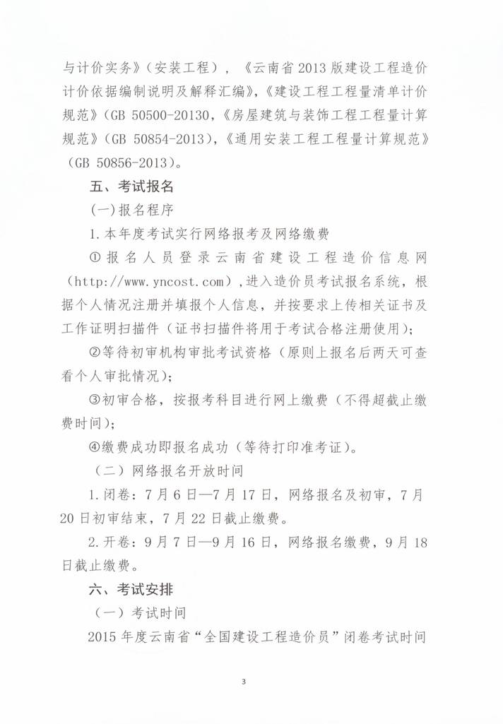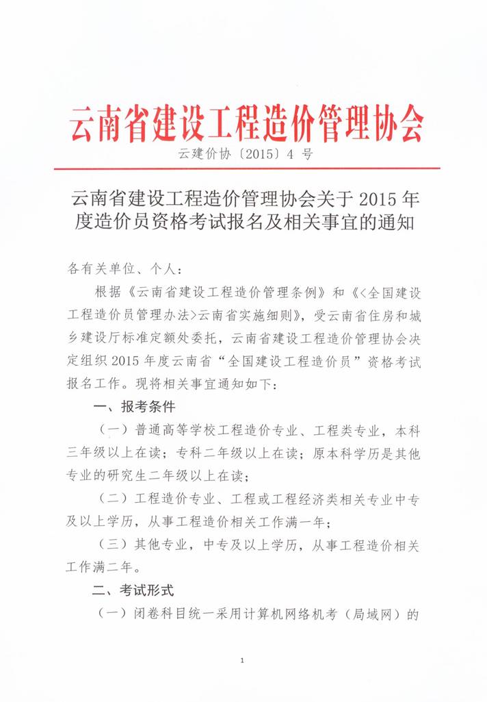 云南省2015年度造價員資格考試報名及相關(guān)事宜通知