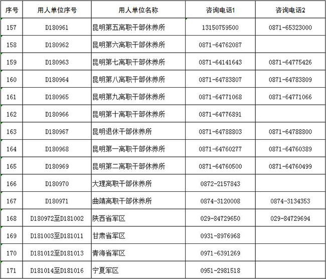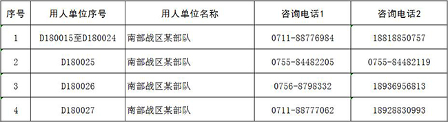 聯(lián)勤保障部隊(duì)咨詢電話:027-59561376;電子郵箱:lqbzbd@81.cn