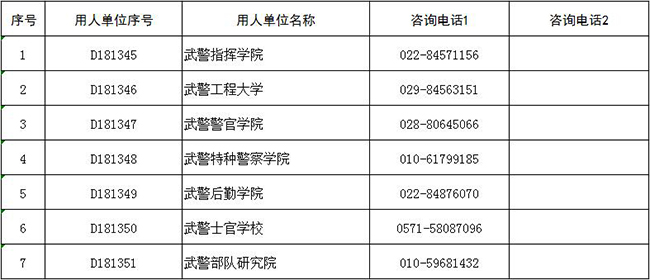 武警部隊(duì)咨詢電話:010-68736791;電子郵箱:wjbd@81.cn