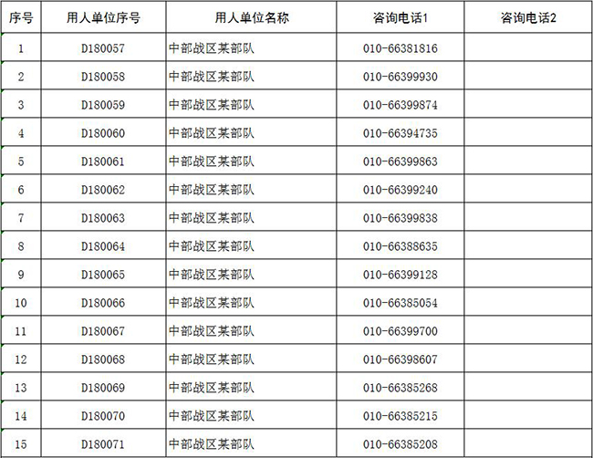中部戰(zhàn)區(qū)咨詢電話:010-66396828,010-66396830;電子郵箱:zbzq@81.cn
