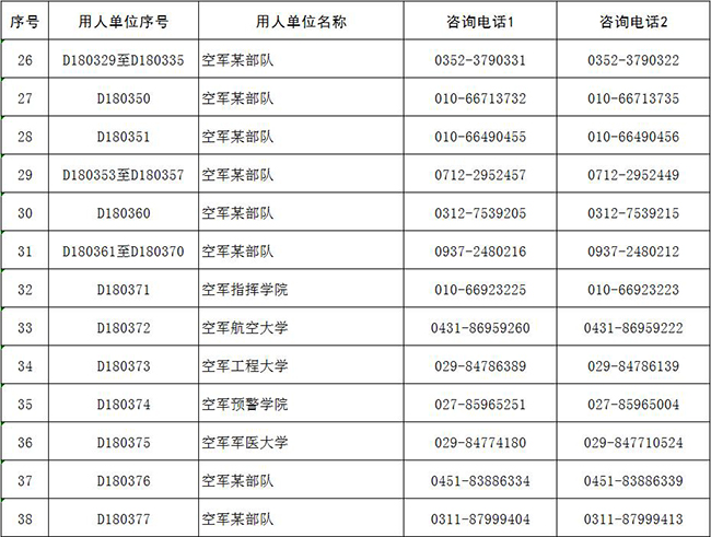 空軍咨詢電話:010-66989172,010-66983025;電子郵箱:kongjun@81.cn