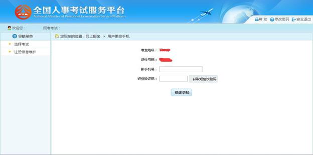 在該界面可以對考生的登錄密碼進行修改。