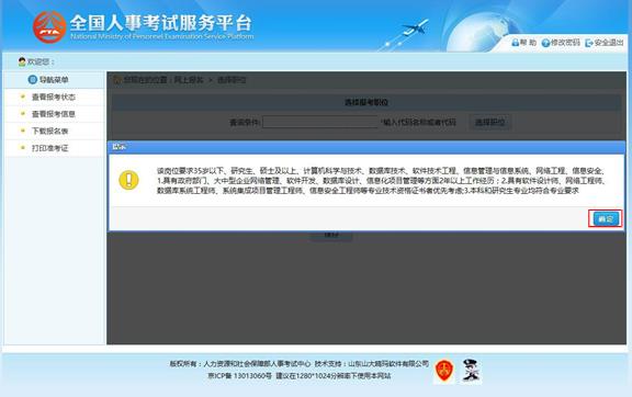 選擇對應的職位后,系統(tǒng)會提示報考該職位所需的條件,如下圖所示: