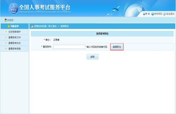 點擊“選擇職位”選項,可以跳轉到選擇報考職位界面,如下圖所示: