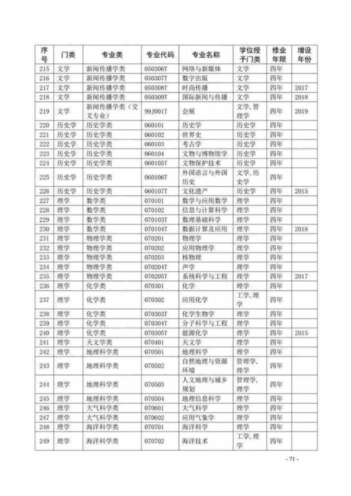 | 序號 | 專業(yè)代碼 | 專業(yè)名稱 |