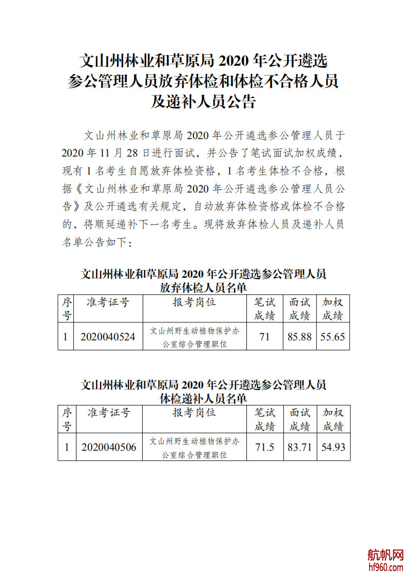 管理人員放棄體檢和體檢不合格人員及遞補(bǔ)人員公告