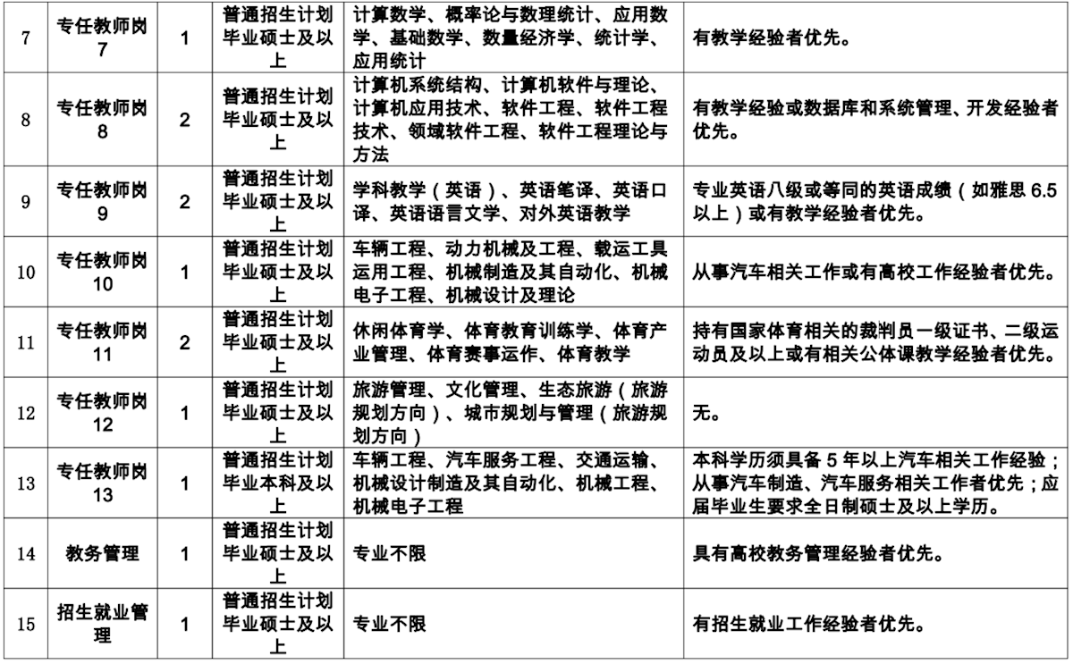 招聘崗位:專任教師18名、管理崗位3名