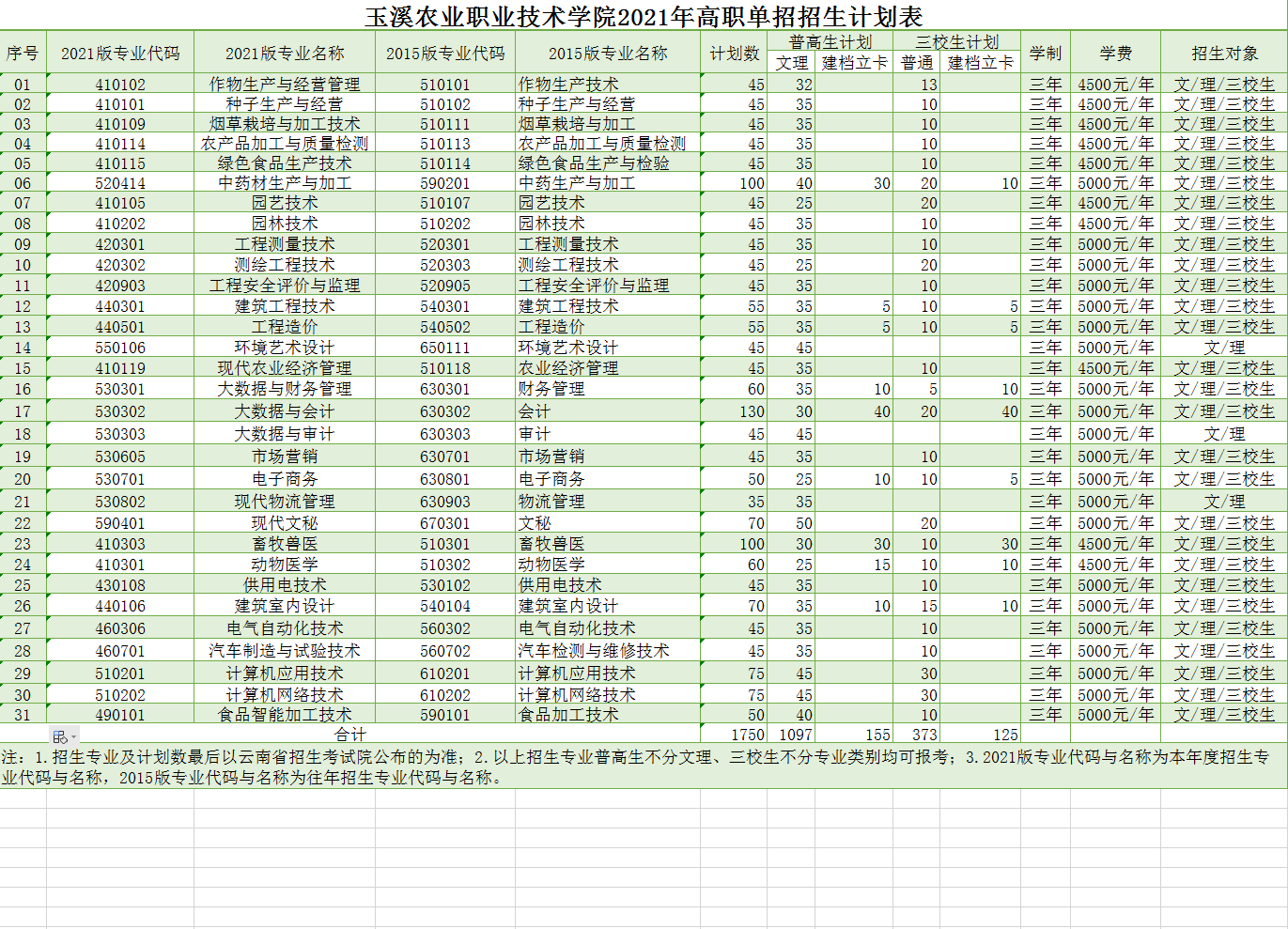2021年玉溪農(nóng)業(yè)職業(yè)技術(shù)學(xué)院三年制專