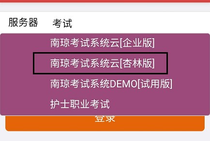 第三步 在服務(wù)器中 輸入【考試】,選擇【南瓊考試系統(tǒng)云[杏林版]】