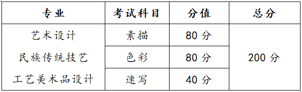 職業(yè)技能測(cè)試總分200分,為素描、色彩和速寫三科得分之和,各科目總分占比如下: