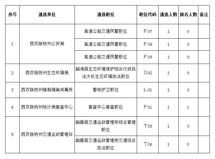 西雙版納州州級機關(guān)(單位)2021年公開遴選公務(wù)員(參照公務(wù)員法管理人員)報名工作已于2021年4月2日18時結(jié)束。根據(jù)《西雙版納州州級機關(guān)(單位)2021年公開遴選公務(wù)員(參照公務(wù)員法管理人員)公告》筆試開考比例規(guī)定,現(xiàn)決定取消以下遴選職位: