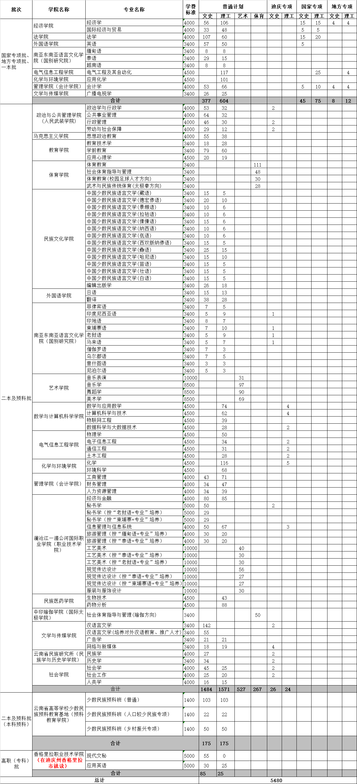 2021年云南省本??萍邦A(yù)科招生計(jì)劃