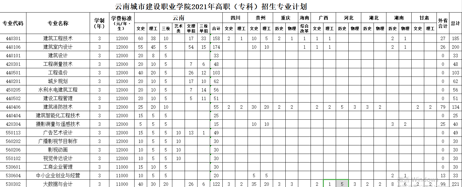 云南城市建設(shè)職業(yè)學(xué)院2021年高職(??疲┱猩鷮I(yè)計(jì)劃