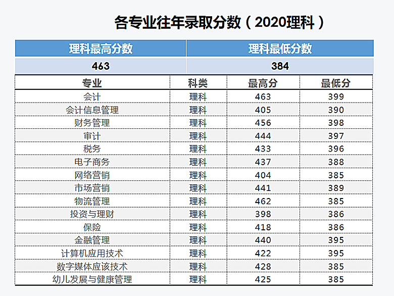 云南財經(jīng)職業(yè)學(xué)院2020年各專業(yè)錄取分數(shù)線