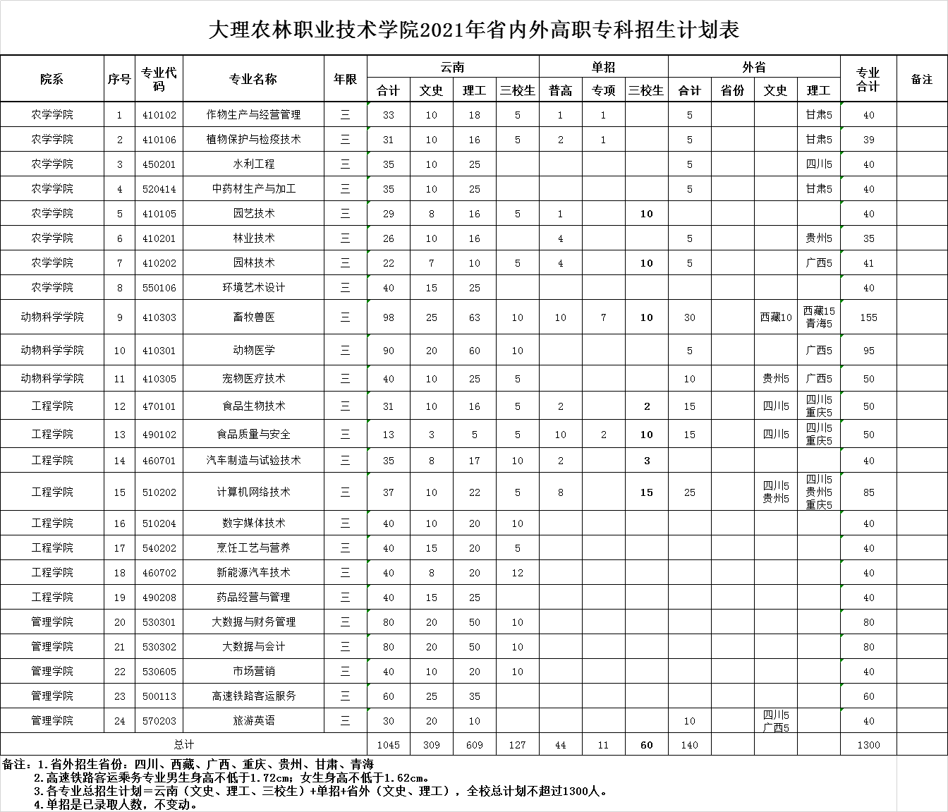 大理農(nóng)林職業(yè)技術(shù)學(xué)院2021年省內(nèi)外三年制高職??普猩媱澅?/strong>