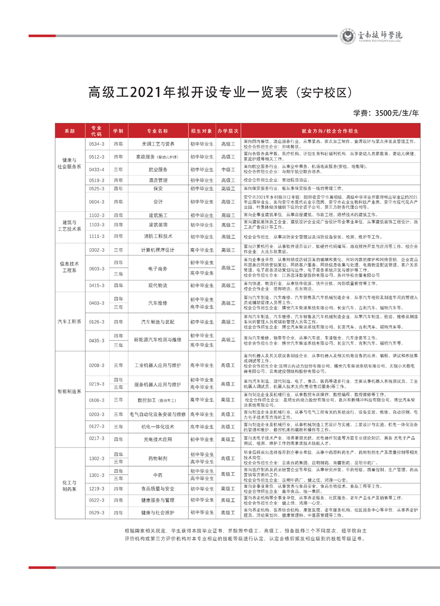 云南技師學(xué)院2021年招生簡章