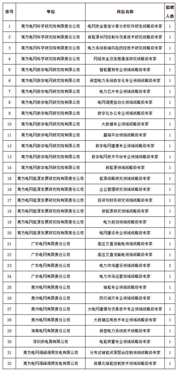請見附件1:南方電網(wǎng)公司高層次人才招聘計劃匯總表。