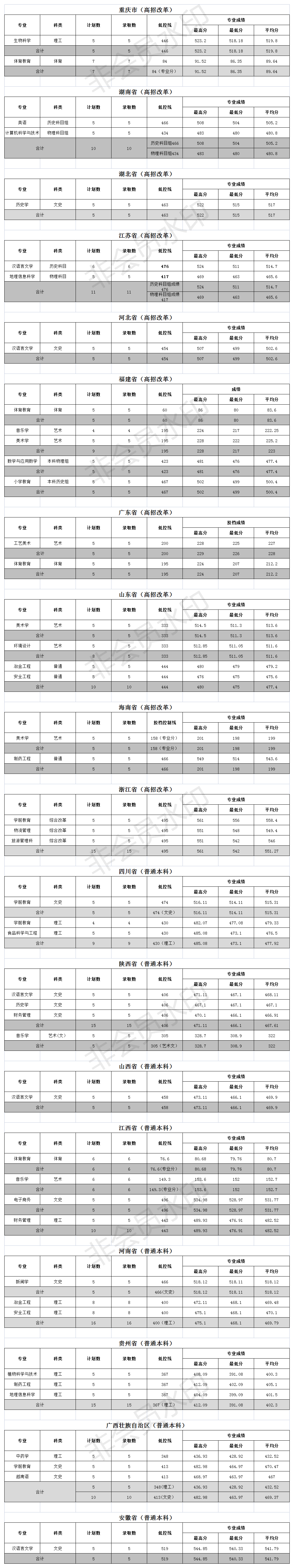 文山學院2021年招生錄取分數(shù)統(tǒng)計三(外省本科)