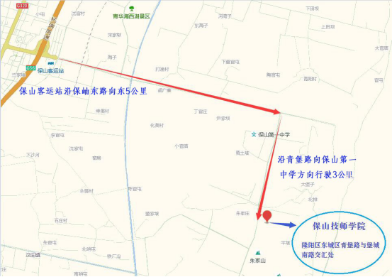 保山技師學(xué)院地址:保山市隆陽區(qū)永盛街道大堡子社區(qū)青堡路與堡城南路交匯處。位置示意圖如下: