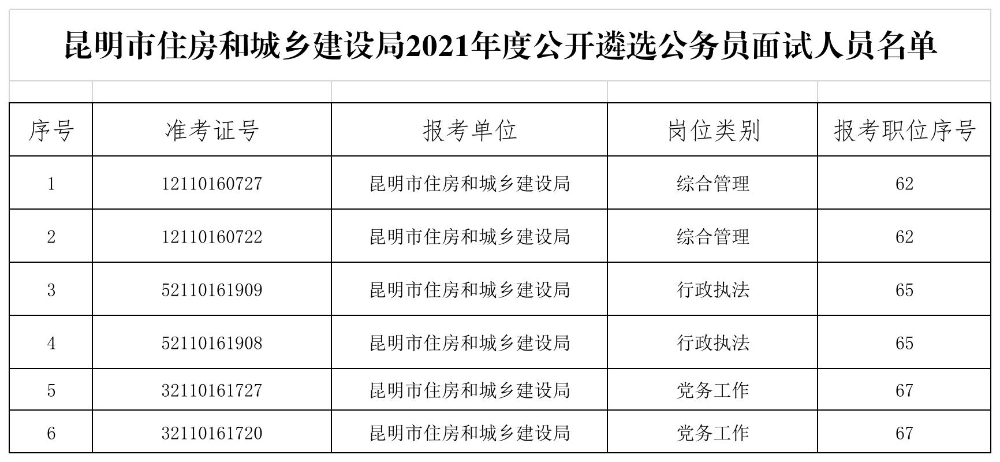 附件:昆明市住房和城鄉(xiāng)建設局2021年度公開遴選公務員面試人員名單