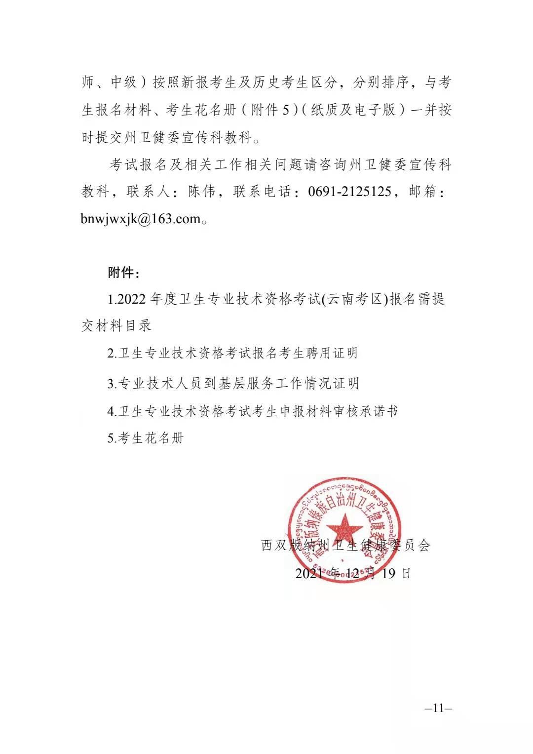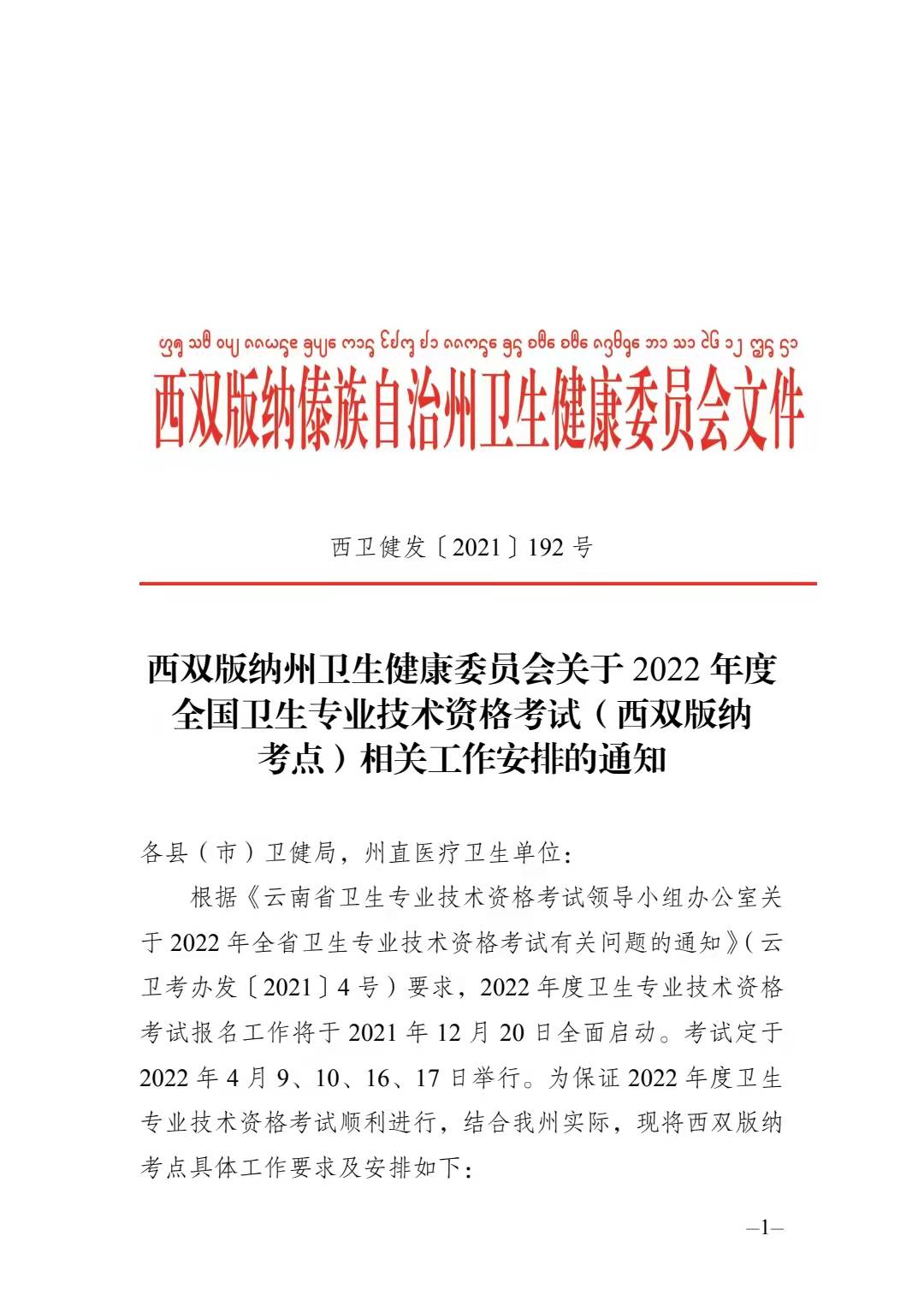 關(guān)于2022年度全國衛(wèi)生專業(yè)技術(shù)資格考試(西雙版納考點(diǎn))