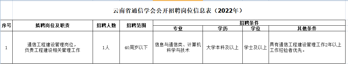 2022年云南省通信學會人事招聘公告