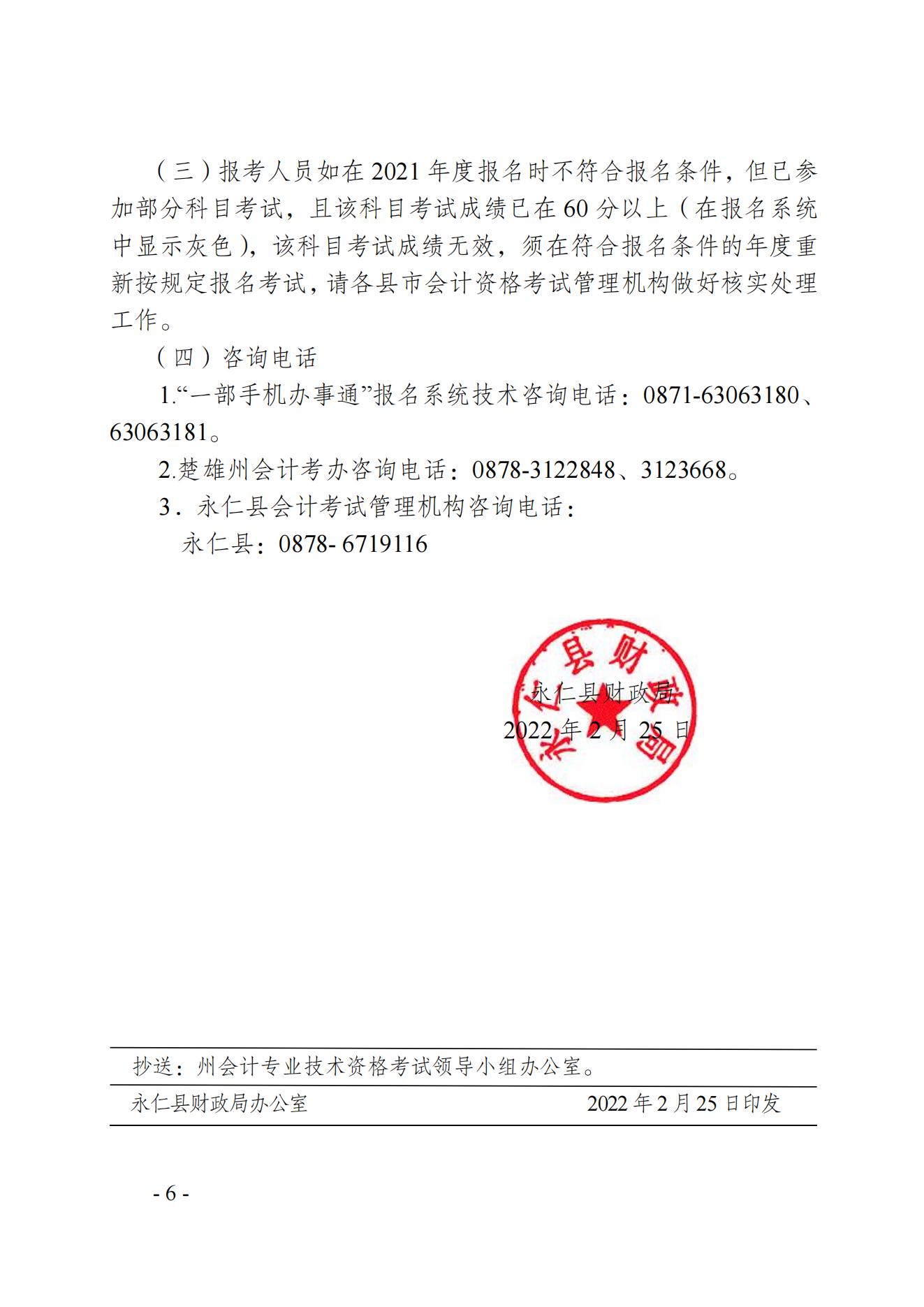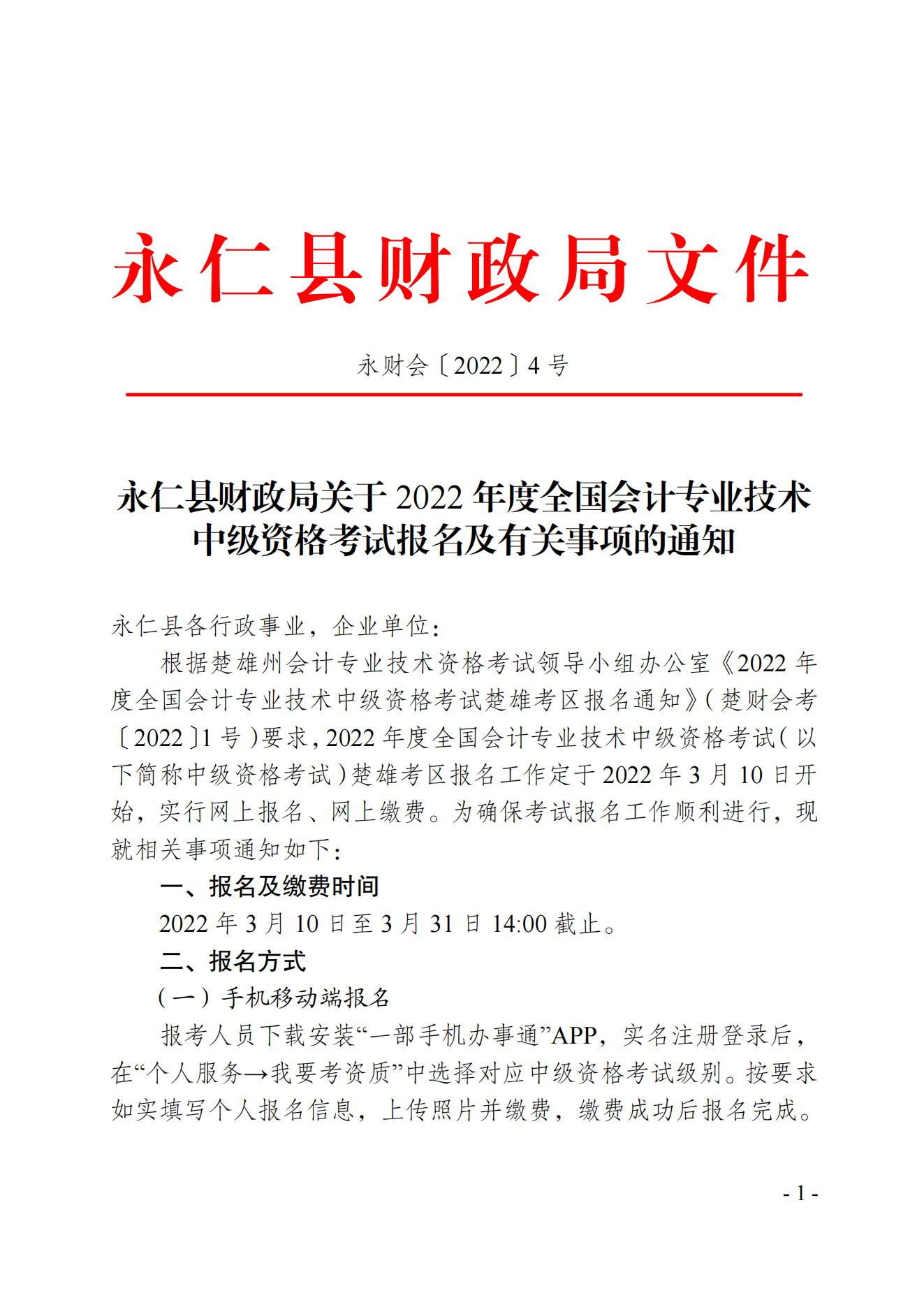 永仁縣財(cái)政局關(guān)于2022年度全國會(huì)計(jì)專業(yè)技術(shù)中級(jí)資格考試報(bào)名及有關(guān)事項(xiàng)的通知