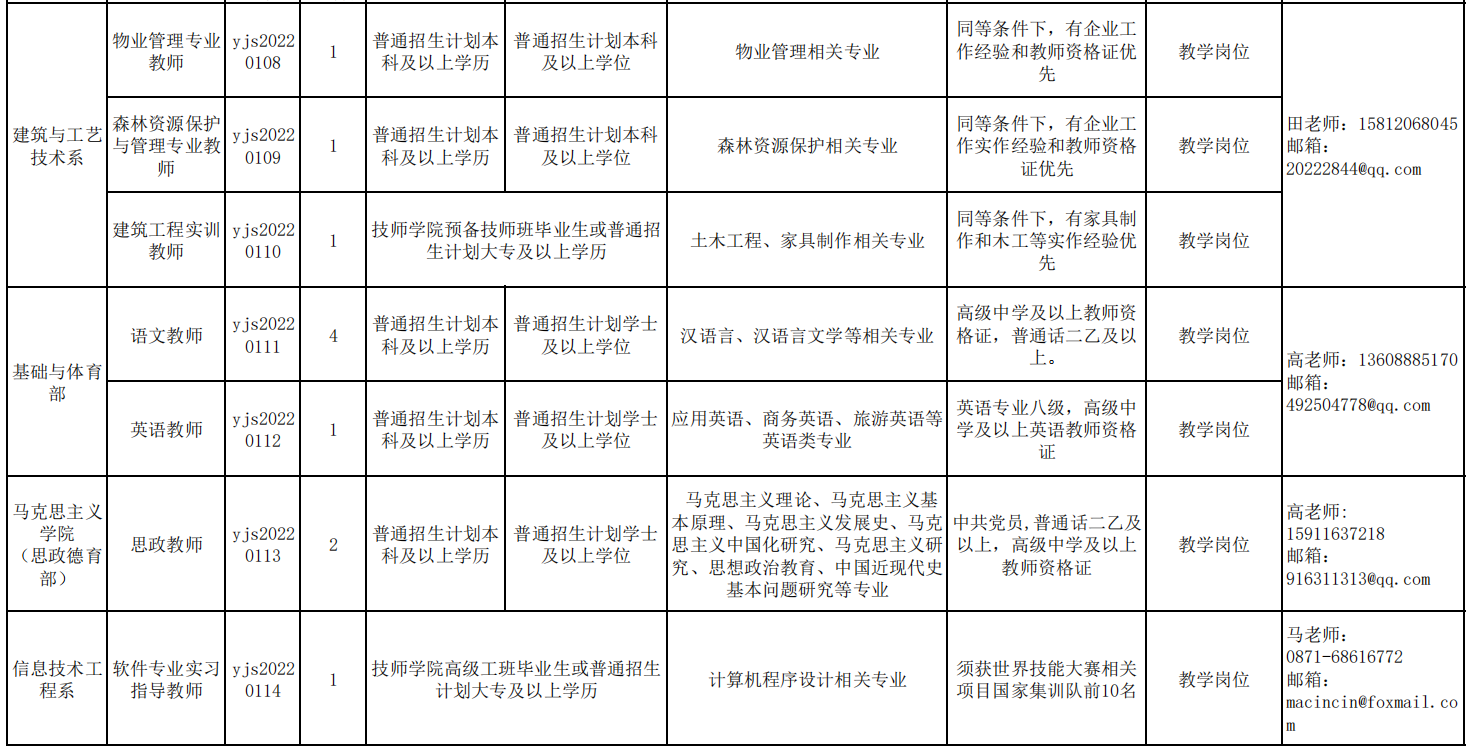 具體招聘崗位、人數(shù)及招聘條件,詳見《云南技師學(xué)院(云南工貿(mào)職業(yè)技術(shù)學(xué)院)2022年公開招聘編制外見習(xí)人員和非全日制教師計(jì)劃表》(附件1)。