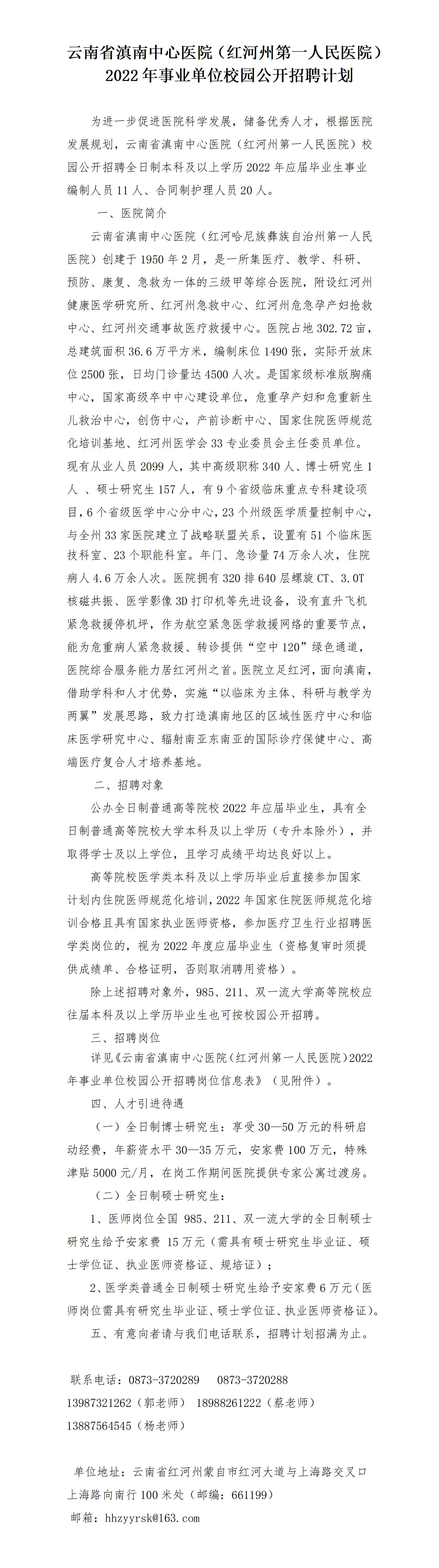 附件:云南省滇南中心醫(yī)院(紅河州第一人民醫(yī)院)2022年事業(yè)單位校園公開招聘崗位信息表.xlsx