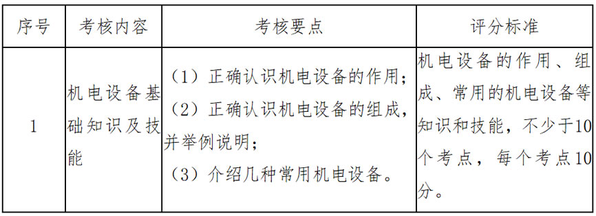 (2)技能要求:正確認(rèn)識機(jī)電設(shè)備的作用、組成;知道常用的機(jī)電設(shè)備,介紹幾種常用的機(jī)電設(shè)備。