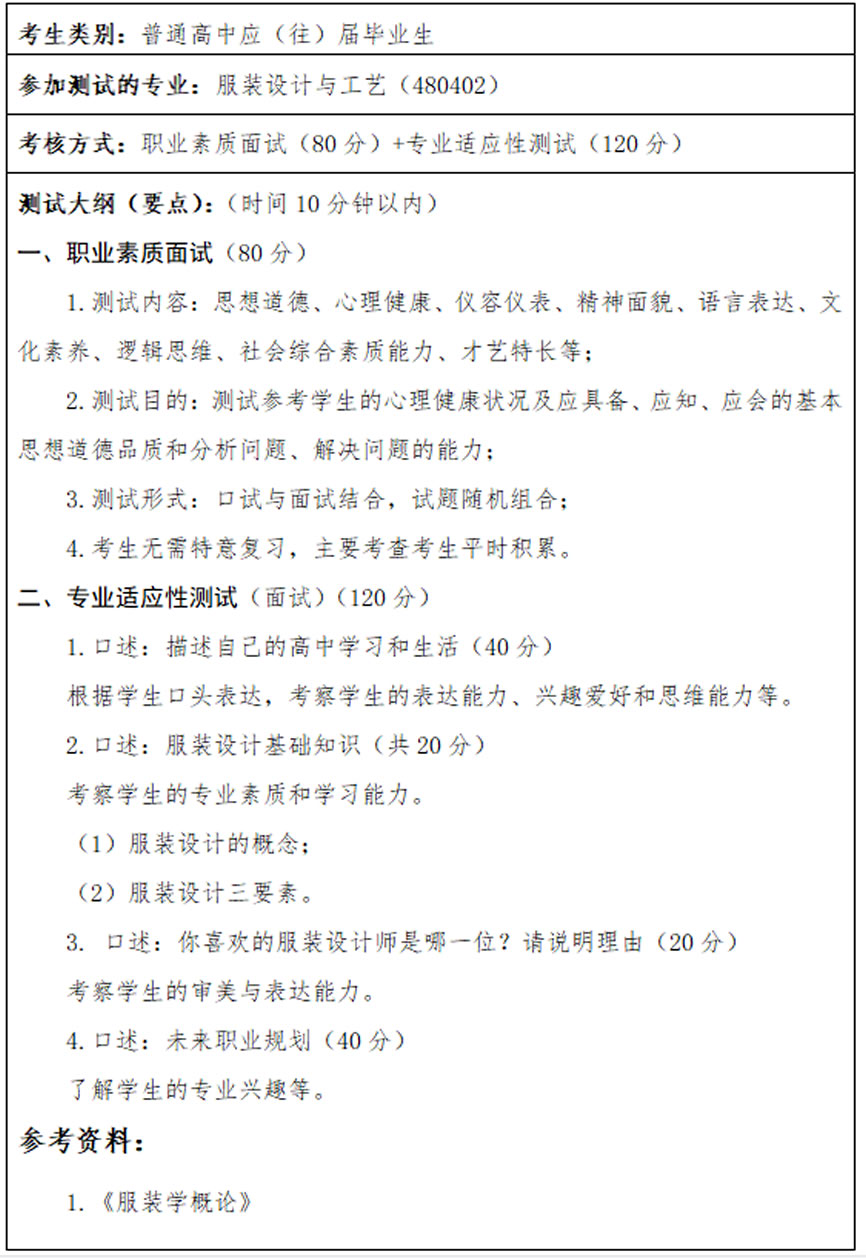 服裝設(shè)計(jì)與工藝專業(yè)(480402)