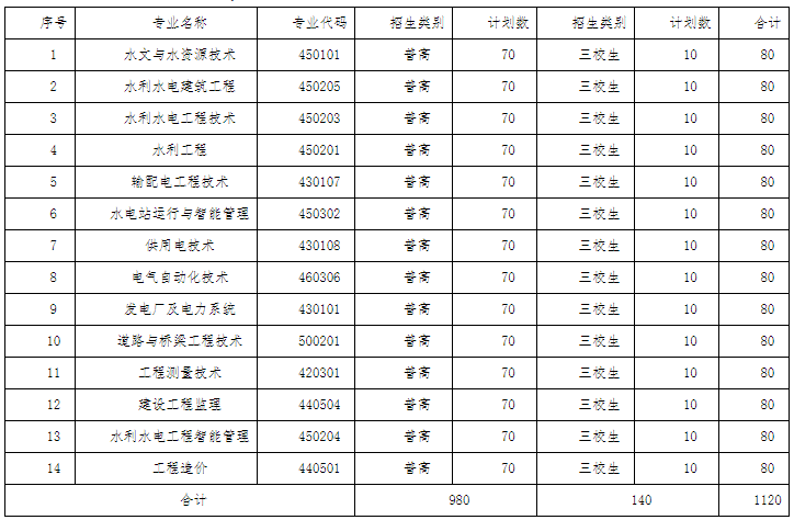 云南水利水電職業(yè)學院2022年單獨招生預計安排1120人,其中980人為普高生,140人為三校生。(最終招生專業(yè)和計劃數(shù)以省教育廳審核公布的為準)