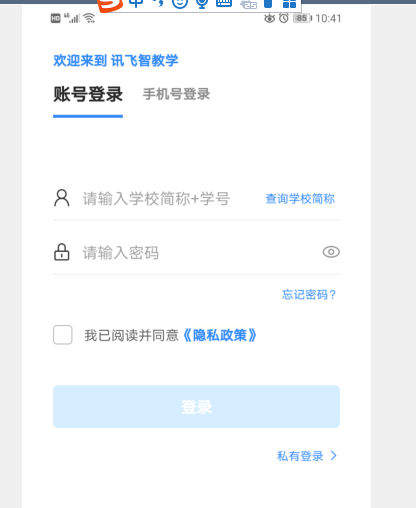 1.考生于考試前15分鐘打開手機(jī)訊飛智教學(xué)APP,輸入登錄賬號和密碼,點(diǎn)擊“我已閱讀并同意《隱私政策》”點(diǎn)擊“登錄”。