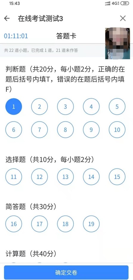 學(xué)生答題完畢后,在規(guī)定的時(shí)間即可點(diǎn)擊“確定交卷”,若沒有點(diǎn)擊交卷按鈕,考試時(shí)間截止后系統(tǒng)也會自動交卷。
